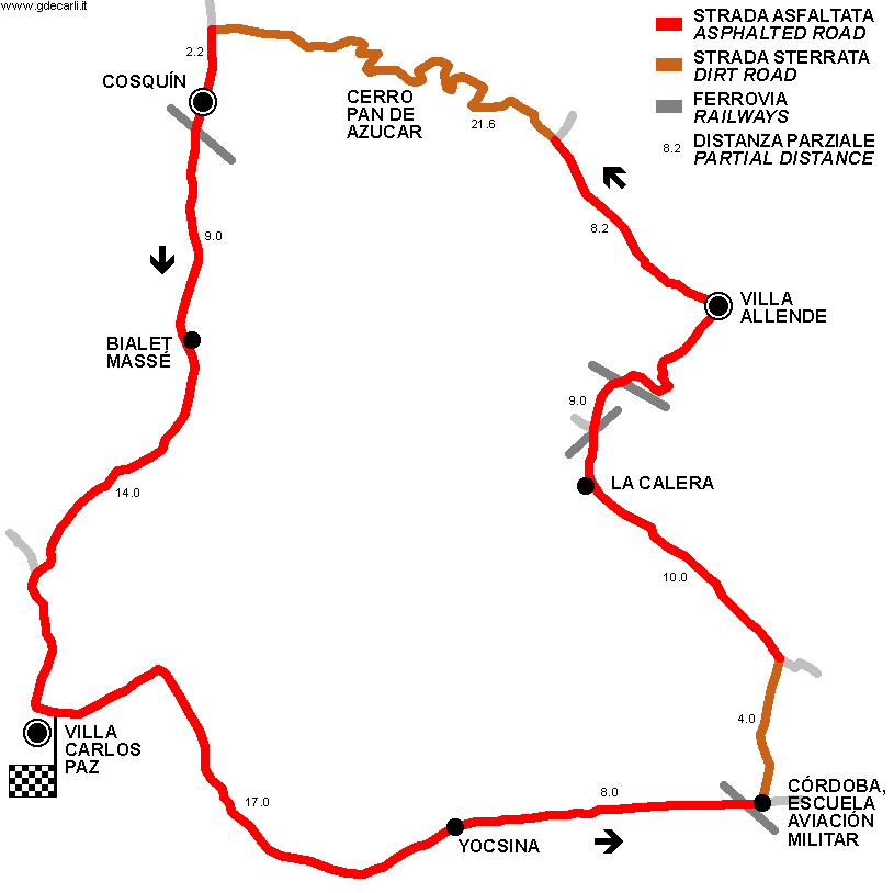En la categória D los dos Fiat 1500 que presentó Antonio J. Sergi asomaban como candidatos serios y firmes al primer puesto de su categoría, Nasif Estéfano utilizó la misma unidad que usara en Capilla para vencer, es decir, un 1500 C con cinco velocidades, calzado en cuatro cubiertas Dunlop SP de 165 x 13. Miguel Angel Galluzzl, que completaba el equipo llevando como acompañante a Francisco Mayorga, prefirió el modelo anterior, es decir, el denominado corto, que a pesar de mantener la caja de cuatro original, tiene homologado un colector de escape donde los tubos de salida presentan un diámetro de 42 mm a cambio de los 40 mm de norma. En este automóvil se utilizaron cubiertas de 5,70 x 13. Nasif punteó fugazmente en su categoría, a poco de largar en Carlos Paz, mientras Reutemann, con el No- 19, pasaba a autos que lo habian superado en la clasificación. Por Villa Allende punteaba el piloto santafesino, pero en la cima del Pan de Azúcar establecían los dos el mismo tiempo, de manera que Estéfano recuperaba posiciones en el camino rocoso. Ya a esta altura el Flat de Galluzzi no sonaba con salud y dejó de atravesar controles, Reutemann se le escapó a Nasif en la primera bajada de Cosquin hasta Carlos Paz donde sumó 25 segundos a su favor. Tercero se ubicaba Pascualini a 1 minuto 45 segundos, cuatro Pedeloborde a 2 minutos 2 segundos, quinto Oscar Mauricio Franco a 2 minutos 38 segundos. Volvía a descontar Nasif en la trepada y abandonó después de irse de camino, en la misma curva donde se golpeara velozmente Naranjo (Giulia) y donde "Pepe Zanetta" chocara contra un cartel señalizador, sin desgracias personales en los dos casos. Al Cruzar Carlos Paz por segunda vez, el panorama no era todavía claro para Reutemann ya que Carlos Pascualini se le había acercado peligrosamente en tiempo, favorecido por el viajar entre los primeros lugares del camino. Sin embargo, Pascualini debió detenerse en una curva de la localidad de Catan, durante más de 2 minutos, de manera que Reutemann pudo completar con cierta tranquilidad la tercera vuelta prácticamente sin amortiguadores y con la caja de velocidades trabada en la tercera y cuarta relaciones. A mitad de segunda vuelta el Giulietta de Rodolfo-Picón se raspó contra el público mal ubicado, repitiéndose la ingrata anécdota de Mayorga en Cruz del Eje el domingo 10. Tampoco hubo esta vez muertos, sólo por una inexplicable fortuna. Reutemann le ganó finalmente a Pascualini por 2 minutos 37 segundos, logrando su segunda victoria en el circuito Onofre Marimon y segunda también de su pronta trayectoria de siete competencias corridas. El ganador conocía muy bien los 103 kilómetros de cada vuelta y confirmo en el parque cerrado que ello le permitió equilibrar en buena parte las dificultades que ofrecía la lluvia. Pascualini, con su detención en Saldán para cambiar una llanta rota, no tuvo posibilidades de disputar la victoria pero aún así no perdió el lugar de primero en la categorla en el camino. Tercero a 6 minutos 46 segundos, resultó Mauricio Franco, completando una carrera muy lógica que planteó desde el cuarto puesto, empatado con Pedelaborde en la primera vuelta. El abandono de Estéfano y el retraso de Pedelaborde, quien llegó en tres cilindros con la junta de tapa soplada, premiaron su sensatez. Franco quedó separado de Reutemann por 2 minutos 44 segundos, seguido por Juan Pomodoro, con Isard 1204.
